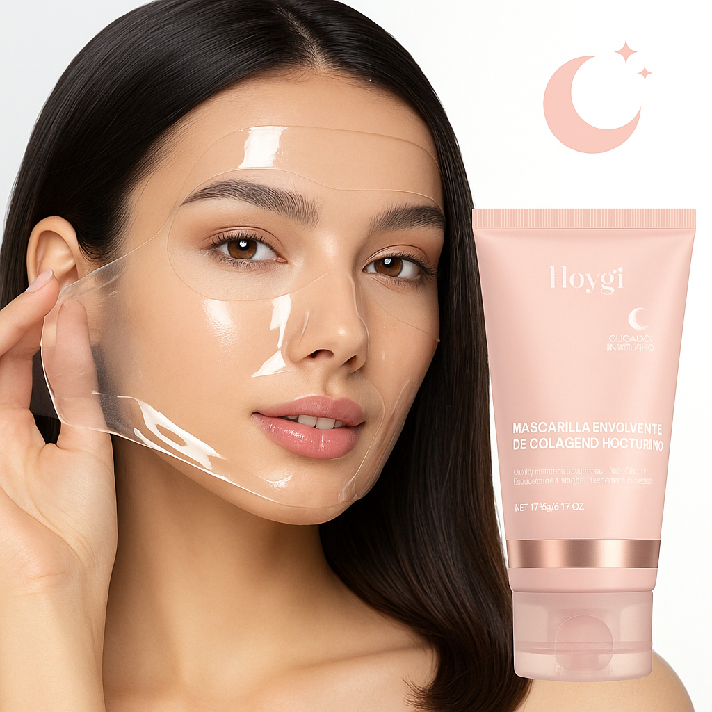 Nuestra mascarilla nocturna de colágeno coreano hidrata profundamente y reduce arrugas mientras descansas, revelando una piel firme y radiante